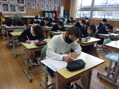 先日の計算大会に続き、本日(木)は、漢字大会を実施しました。計算大会と同様に合格に達しない場合は、再テスト等で漢字の定着を図ります。6年生は、担任から「間違ってもいい。間違えたところは、今後に活かせばいい。思いっきり間違えろ。」と激励と失敗を恐れず立ち向かっていく力強い言葉が伝えられました。みんな熱心に漢字大会に取り組みました。