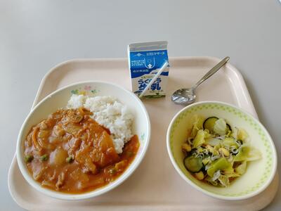 今日は6年生からのリクエスト「ハヤシライス」です。ハヤシライスのルーは小麦粉とマーガリンで手作りでした。弱火で1時間かけて作ってあります。じっくり温めて作るとコクのあるルーに仕上がります。そのためか、ルーにとろみと甘さがありました。じゃこまめサラダとの組み合わせもよかったですね。ちなみに、ご家庭では「ハヤシライス」と「カレー」の献立の割合は、何対何くらいですか。我が家は、1対10~20くらいです。ハヤシライスは好きですが、なぜかこの割合くらいです。