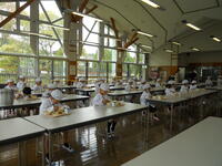 今日はランチルームで食べた1年生。