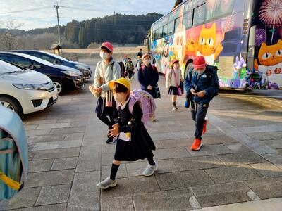 朝の登校の様子です。休み明けのためか、少し元気がありません。あいさつの声もです。自分からあいさつが、なかなかできないのが現状です。もう一枚は、「あいさつ」定着のために、生活委員会児童と担当の五反田を中心に、児童昇降口に1月下旬に設置しました。また、保護者の皆様には、朝の登校の際「あいさつ運動」をしていただいています。令和4年度4月から、学校評議員さんや児童民生委員の方々に協力いいただいて、あいさつの定着・向上を図る計画をしています。「たかがあいさつ」ではありません。社会に出てから、一番大切なコミュニケーションの入り口が「あいさつ」です。ご家庭でも、引き続きご指導をお願いします。