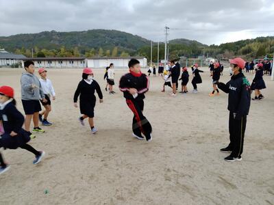 昼休みに長縄跳び大会を行いました。寒風の中、5分間跳びに、縦割り班で挑戦しました。低学年(特に1年、2年)が跳べるように、高学年の回し手が優しく跳ばしているシーンがありました。「今、入る!」などの声かけもありました。あまりの寒さに、結果を班長が松尾先生に知らせて終わりました。結果発表は、来週です。200回以上跳んだ班が優勝候補です。