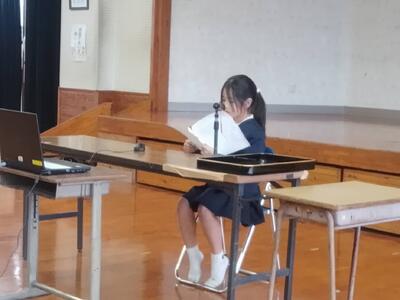 次に、2年生と4年生の代表児童による、2学期の振り返りの発表を行いました。