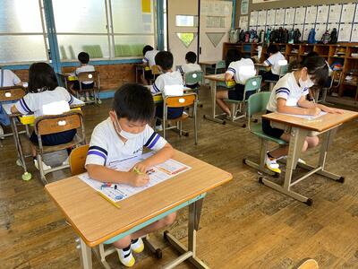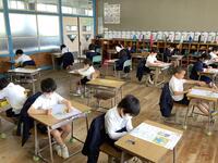 国語では単元テストをしました。時間いっぱい真剣に解きました。