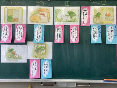 これまでの授業で、がまくんとかえるくんの気持ちを考えて読む練習をしてきました。