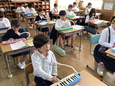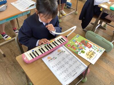 今週の音楽から、鍵盤ハーモニカを弾いています。