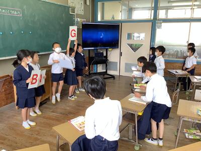 1年生のみんなに、「学校を好きになってもらいたい」「学校って楽しいところって知ってほしい」という思いから学校案内を行いました。自分たちで案内する場所や紹介の仕方を考え伝えることができました。