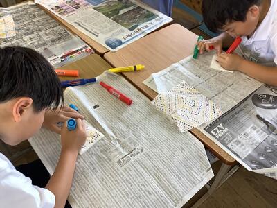 とても素敵な模様が浮かび上がってきました。ティッシュペーパーを開くまでどんな模様になるか分からない授業展開に感動していた子供たちでした!