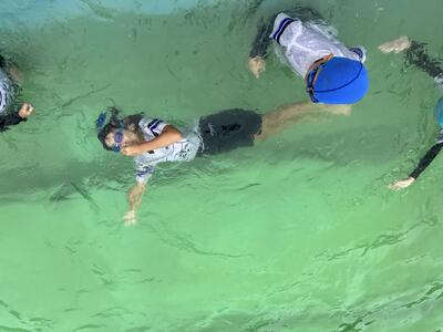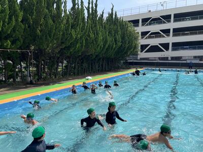 後半は、ペットボトルやボール、ビート板を使って、背浮きで浮く練習もしました。体に力が入り、うまく浮けないことがありましたが、校長先生も言われた「自分の命は自分で守る」ことは忘れないでほしいと思います。