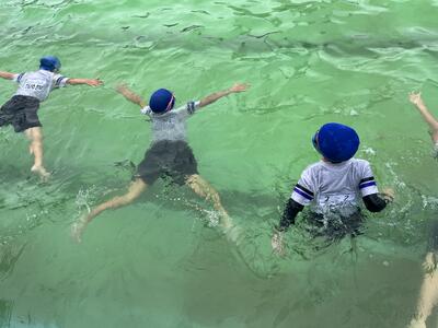 そしていよいよプールへ!今日はプールの中で歩いたり、走ったり、潜ったり・・・水になれる活動に取り組みました!