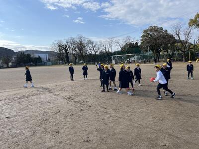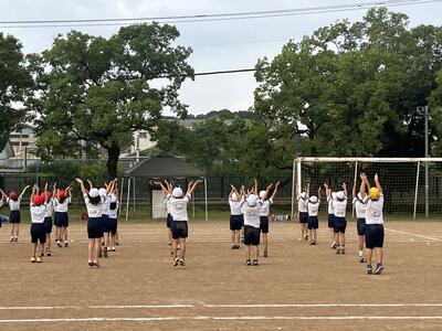 ダンス「あいうえ音楽」もほぼ覚えて、隊形移動を運動場でやってみました。本番が楽しみです。