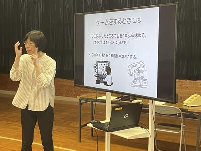 養護の宮﨑先生の指導で「目のけんこう」について学習をしました。ゲームや動画など、一点を集中的に注視する時は、30分に1回、5分程度の休憩が必要なことを学習しました。目を健康に保つためにも実践していきたいものです。