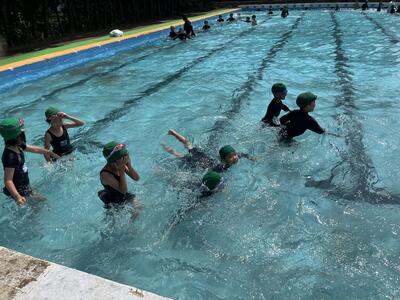 「水泳のお勉強は、命を守るためにするということを忘れないでください。そのために、先生の話をよく聞いて、ルールを守って、楽しく勉強してください。そして、目標を決めて、決めた目標を達成できるように一生懸命頑張りましょう!」
