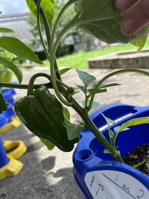 「もう花が咲きそうです!」と自分で植えて、育てているピーマンの成長に驚く子どもたちでした!