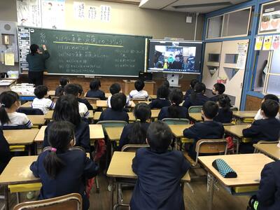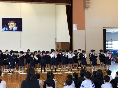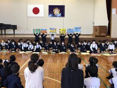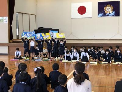 火曜日、1年生に二小の一年間での楽しい行事を絵で紹介したり、歌や合奏を発表したりしました。