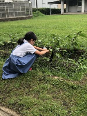 学級園で育てている夏野菜が成長しました。
