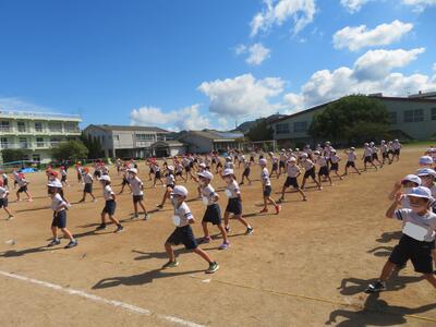 晴天の中、1、2年生の持久走大会がありました。