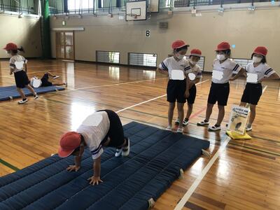 体育ではマットを使った運動遊びのまとめをしました。