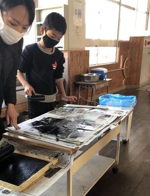 今週の図工の時間は、完成した版を刷りました!!