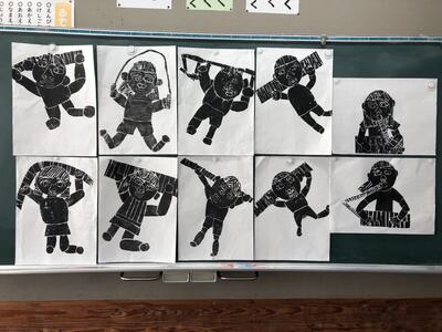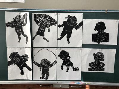 「〇〇している自分」というテーマのもと、友達と動きなどを相談しながら版を作ってきました。