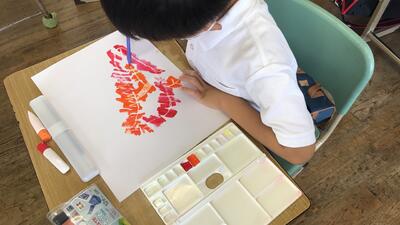 「凄い!字が書ける!」と大喜びしながら、自分の好きな文字を水書きすることができました。