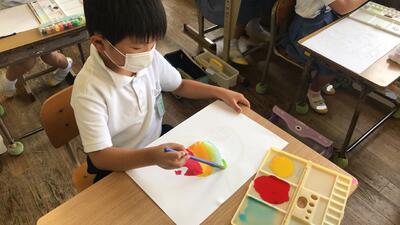 初めての紙版画に挑戦!(2年2組)