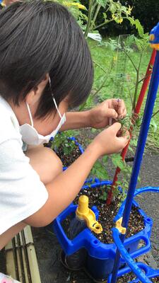 先週、植えたミニトマトの観察をしました。