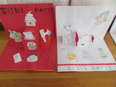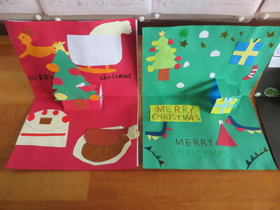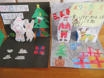 図工で製作中だった「飛び出すハッピーカード」ができあがりました。クリスマースカード、ニューイヤーカード、誕生日カードなどそれぞれ思い思いに渡す相手のことを考えながら作っていました。持ち帰りを楽しみにしていただければと思います。