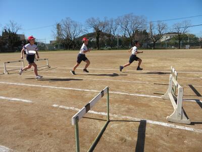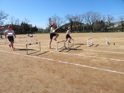 体育でハードル走の学習をしました。ハードルとハードルの間を5歩でリズムよく跳べるように繰り返し練習しました。ハードルにつまづいてこけることもありましたが、タイムを縮めようと一生懸命練習していた子ども達です。冷たい風の中、よく頑張っていました。