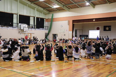 校内遠足がありました。歓迎集会では、○×クイズがありました。頭の上で○×と答えました。答えがあたった子ども達は大喜びでした。とても楽しい時間でした。