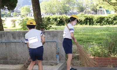 朝から暑い日が続いています。そのため運動場の草も伸びてきています。子どもたちに、「6年生が毎日草抜きしてるから、一緒に草抜きに行こう。」と話すと、朝の準備を終えた子どもたちから手伝いに来てくれています。率先して活動してくれる人がたくさんいて、朝からいい気持ちで過ごすことができています。