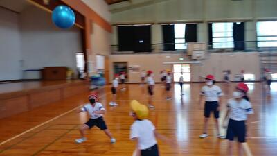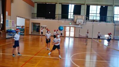 最初は、なかなかレシーブできずに、サーブ打ったら相手チームから返ってこないパターンが多かったのですが、最近は、ラリーが続くようになってきました。また、「○○ちゃん!!(次にさわって!)」など、声が出るようになってきたのもいいところです。ちなみに、勝ち負けではなく、ラリーがどれだけ続くかを目当てに取り組んでいます。