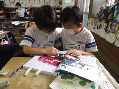 「じどう車くらべ」の学習が終わりました。これから、自分の好きな乗り物について調べ、まとめていきます。どんな図鑑が出来上がるか楽しみです。