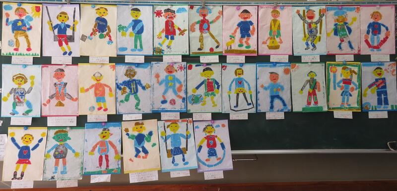 図工で紙版画に取り組んでいました。初めての版画に、最初はイメージが難しい子どももいましたが、出来上がりに「わー!!」と声を上げて喜んでいました。
