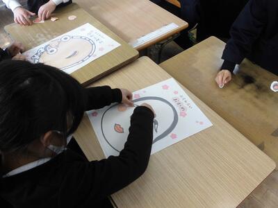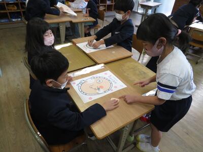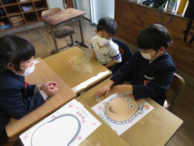 生活科で福笑いをしました。面白い顔になったり、意外としっかり顔になったりとみんなで楽しく活動できました。