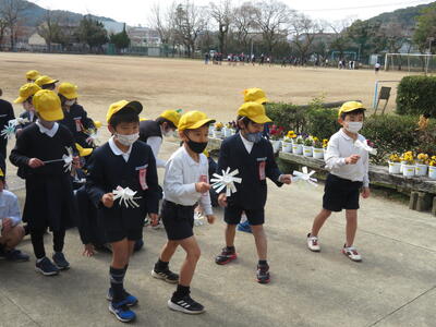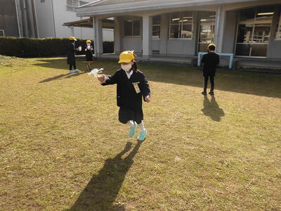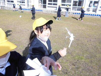 生活科の学習で風車を作って遊びました。紙コップの切り方に苦戦していましたが、思っていた以上に回り、とても喜んでいました。