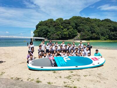 サップにのって遊んだり、ビーチクリーンをしたり、砂に埋まったり、ビーチフラッグをしたり、湯の児の海を満喫しました。インストラクターの方は、「湯の児の海でいろいろな経験をしながら、水俣の海を大事にする気持ちを持ってほしい。」とおっしゃっていました。