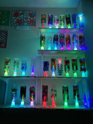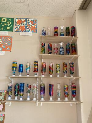 もうすぐクリスマス。町も様々なイルミネーションで彩られる季節となりました。6年2組の教室も子どもたちが図工で作成したペットボトルランプが光り輝いています。