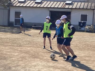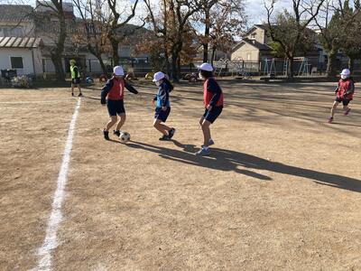 現在、体育ではサッカーの授業に取り組んでいます。チームで勝つための作戦を立て、協力することが目的です。2学期最後の体育の単元。みんなで楽しくプレーしてほしいと思います。