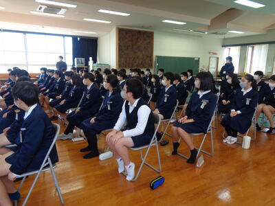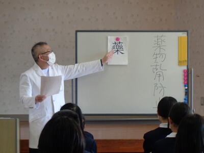 本日5時間目に薬物乱用防止教室として、学校薬剤師の方に来ていただき話をしてもらいました。