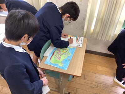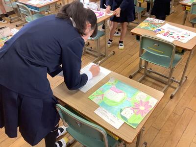 図工の「あったらいいなこんな町、どんな町」でそれぞれ独創性のある町、個性的な町を描きました。子供達の想像力にはとても驚かされました。また、絵から子供達の好きな物がうかがえました。
