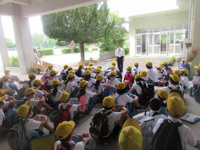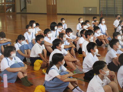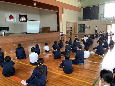 11日、交通安全教室が行われました。雨天のため、体育館での実施となりましたが、交通安全協会の方の