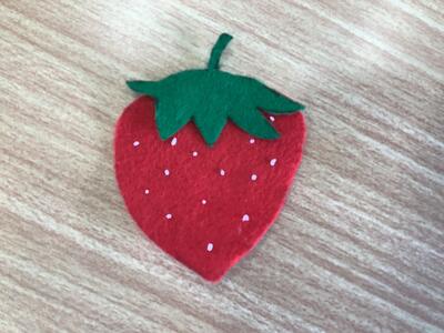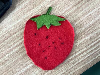 玉止め練習の最後は、いちごの種を玉止めで作ること。見事ないちごを作り上げました。