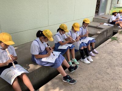 日本的な音階を使って、メロディ作りをしました。自分の節と友だちの節をつないだり、繰り返したりしながら8小節のメロディとなりました。この日は、完成したメロディをリコーダーで演奏してみました。上手く8小節のメロディが演奏できたでしょうか。