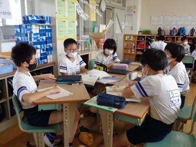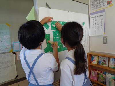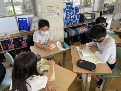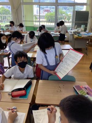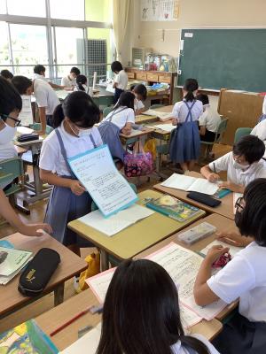 国語の「みんなが過ごしやすい町へ」のまとめをしました。それぞれが調べた工夫について報告しました。報告の仕方も四年生の時より上手になっているのを感じました。
