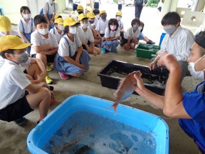 先日の土曜授業では、水俣の海の様子について学習しました。海の動画を見る、海の生き物をさわる体験、魚をスケッチするという活動です。
