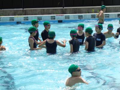 温かく天気のよい日で、1年ぶりプールでの学習に喜んでいました。けのび、バタ足、クロールと、泳ぐ感覚を楽しみました。