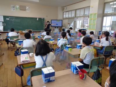 『歯を大切に』という学習を行いました。歯は一生使うものです。口の中を健康にしておくこと、よい歯の磨き方についてしっかりと学習しました。染出し液を使って、しっかり歯が磨けているのか確かめて、磨き残しが多く残る所を気を付けて歯磨きするように話をしています。ご家庭でも、しっかり歯を磨くよう、時には確認や声かけをお願いします。