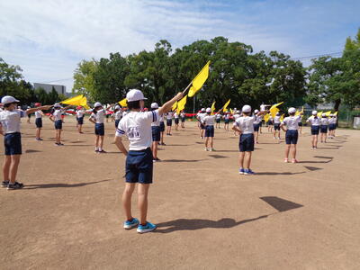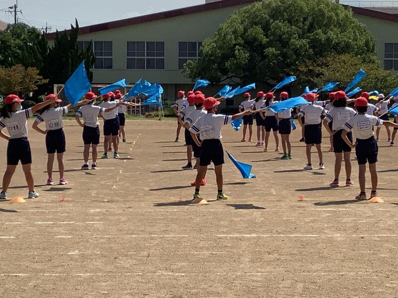 毎日暑い中、運動会の旗ダンスの練習に励んでいます