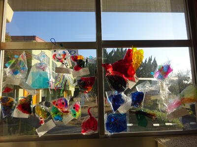 出来上がった作品を窓際に飾ると、太陽の光に当たってきれいに輝いており、