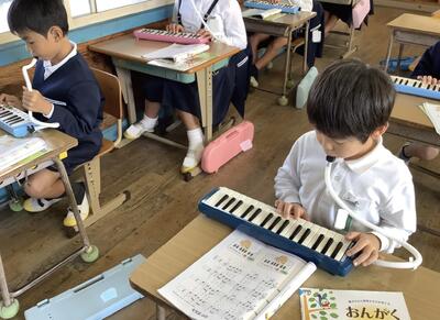 今週の音楽から、鍵盤ハーモニカを弾いています。